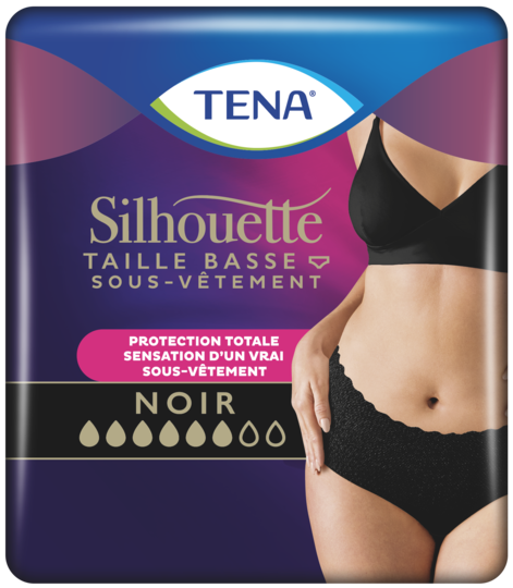Contrairement aux sous-vêtements absorbants ordinaires, TENA Silhouette présente un ajustement près du corps à la coupe nette et élégante et une matière micro-aérée extensible, pour vous déplacer librement toute la journée. Discret, élégant et offrant une protection sûre et confortable, le tissu est sans coutures jusqu’à l’entrejambe, pour un look et aspect similaire à un sous-vêtement classique. C’est notre sous-vêtement jetable le plus discret qui soit, pour optimiser votre silhouette et votre bien-être.