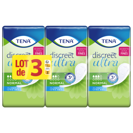 Les serviettes TENA Discreet Ultra Normal offrent une protection fine, discrète et sûre que personne ne remarquera, pour les fuites urinaires légères. Les serviettes sont un peu plus longues que les TENA Discreet Ultra Pad Mini pour vous offrir une protection supplémentaire. Grâce à la Triple Protection TENA, les fuites, les odeurs et l’humidité sont efficacement capturées, vous gardant jusqu’à 12 heures au sec. Vous pouvez donc vous sentir fraîche et en confiance toute la journée.